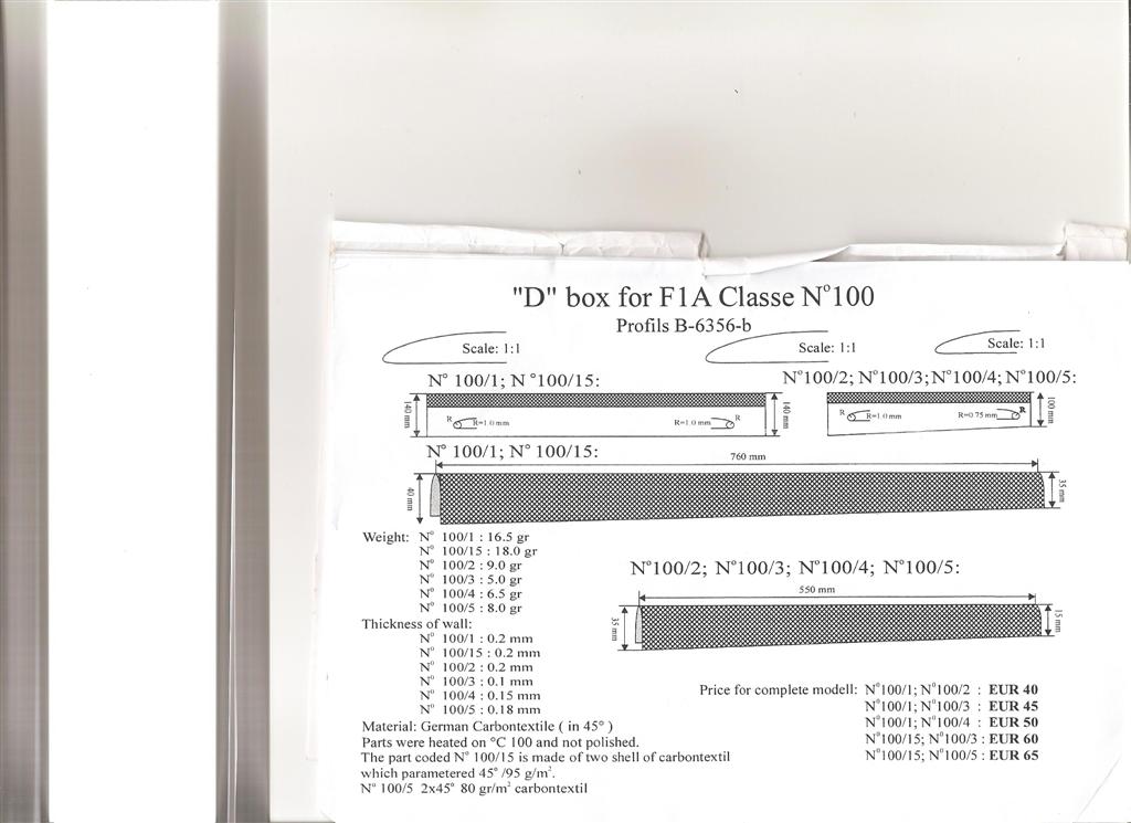 1. D-boxurile , ultima oara le am luat de la un tip din Ungaria Vasas Gyorgy( vezi foto cu adresa) 2. de obicei ele sunt pt modelele de concurs F1A, F1B, F1C si de aici eu aleg ceea ce vreau pentru modelul care vreau sa-l construesc (vezi foto) 3- da, sunt pe marimi dar nu legate de anv, ce legate de categorie. 4- preturile variaza de la categorie la categorie, dela furnizor la furnizor, dar de exeplu cojile pt planor m au costat 50 euro si sunt varianta de la F1C 5- nu vad intrebarea lol 6- aleg de obicei diboxul care se potriveste cu ceea ce fac eu ; de exemplu daca imi fac F1A imi iau D-box de F1A , daca imi fac F1B imi iau d-box de F1B, etc , dar daca adaptez pt zbor Rc imi iau D-box de F1C. 7- da are torsiunen pe ultimul diedru, grade nu stiu ca nu folosesc, folosesc o pana la lungimea diedrului care imi ridica bordul de fuga de la 0 la 5 mm la capat.